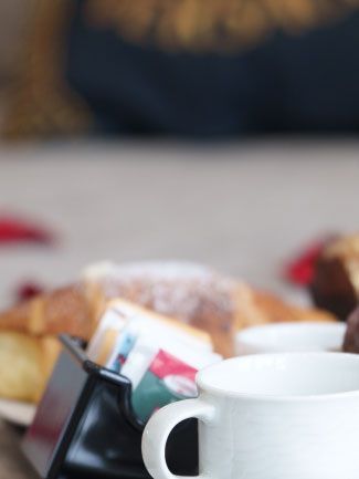 Per chi desidera gustare un pasto o una bevanda nella tranquillità della propria stanza, offriamo un servizio in camera efficiente e discreto. Che si tratti di una colazione rilassante o una cena romantica, il nostro staff ti servirà con cura.